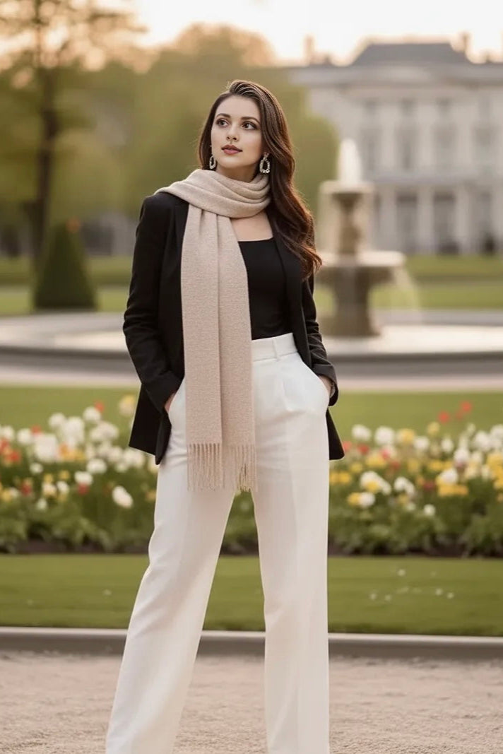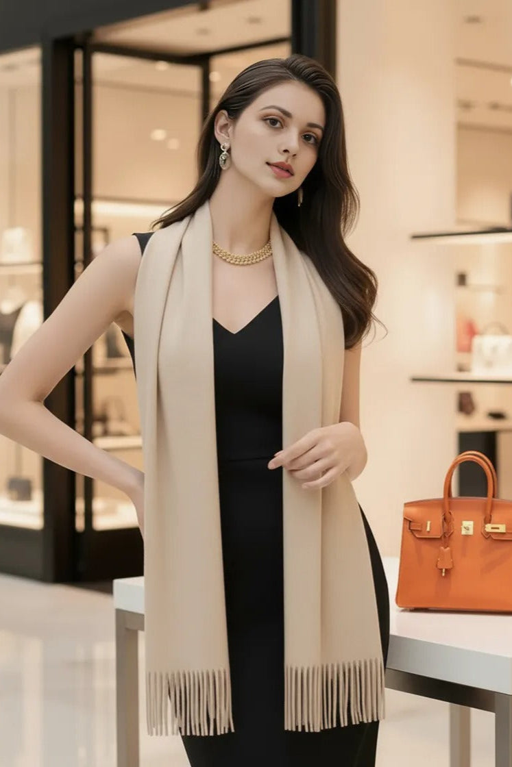 Dieser Schal umhüllt Sie mit edler Wärme und verleiht jedem Outfit eine zeitlose Eleganz, ob im Alltag, im Büro oder bei besonderen Anlässen. Dank seiner dünnen, luxuriösen Struktur ist er ideal für jede Jahreszeit und lässt sich mühelos kombinieren – von klassisch bis modern.