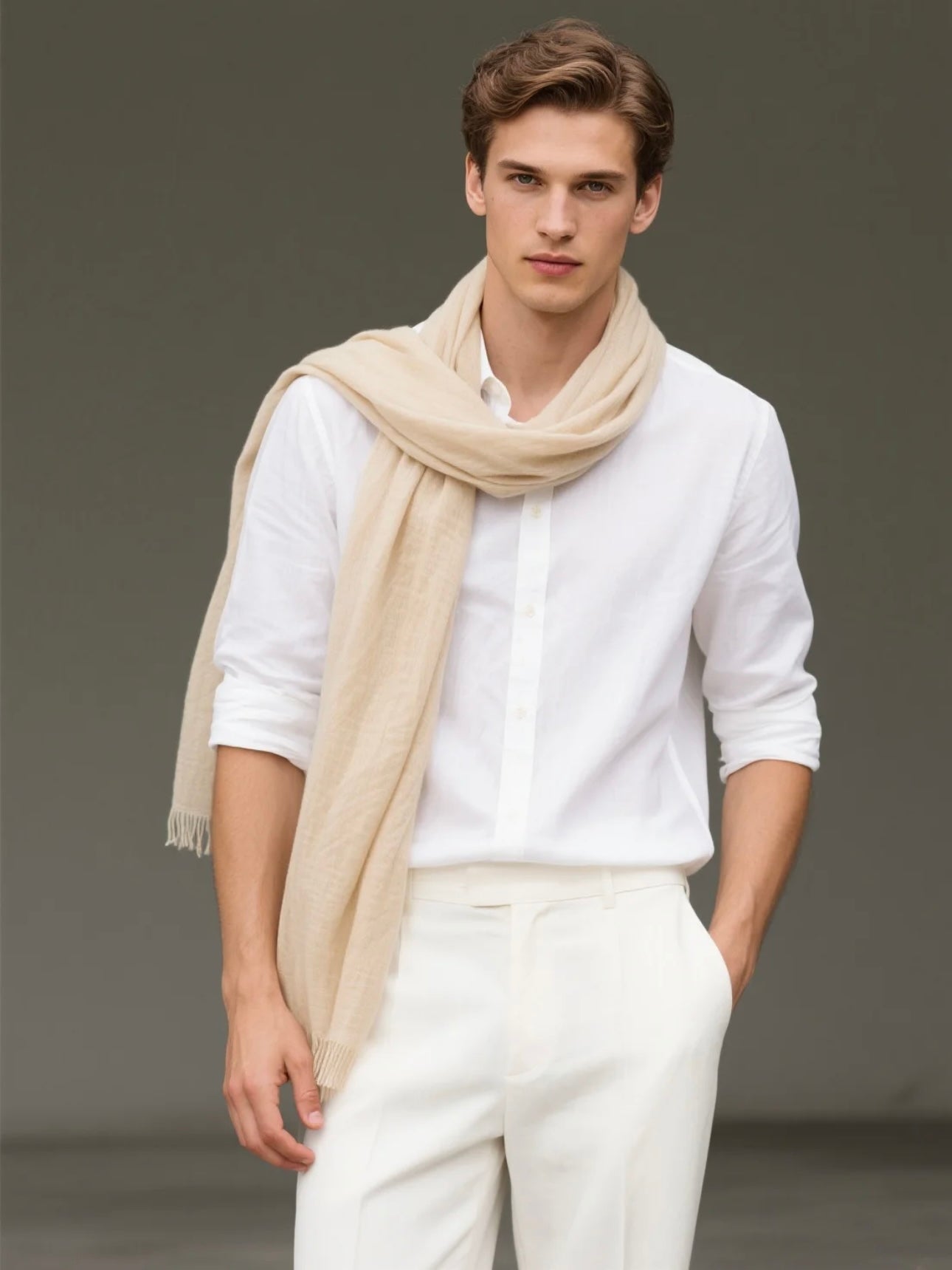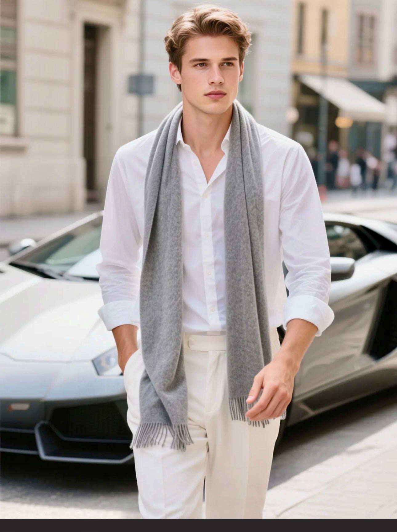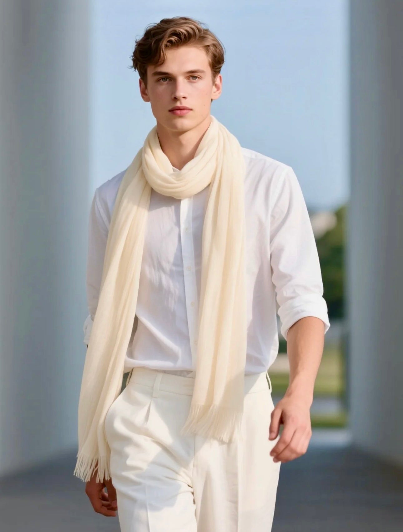 Dieser extra dünne Herren-Sommerschal aus edlem Kaschmir vereint stilvolle Eleganz mit höchstem Tragekomfort. Durch seine feine Verarbeitung ist er besonders geschmeidig, lässt sich kompakt zusammenfalten und verleiht jedem Outfit eine dezente, erfolgreiche Note – ideal für stilbewusste Männer in der warmen Jahreszeit.