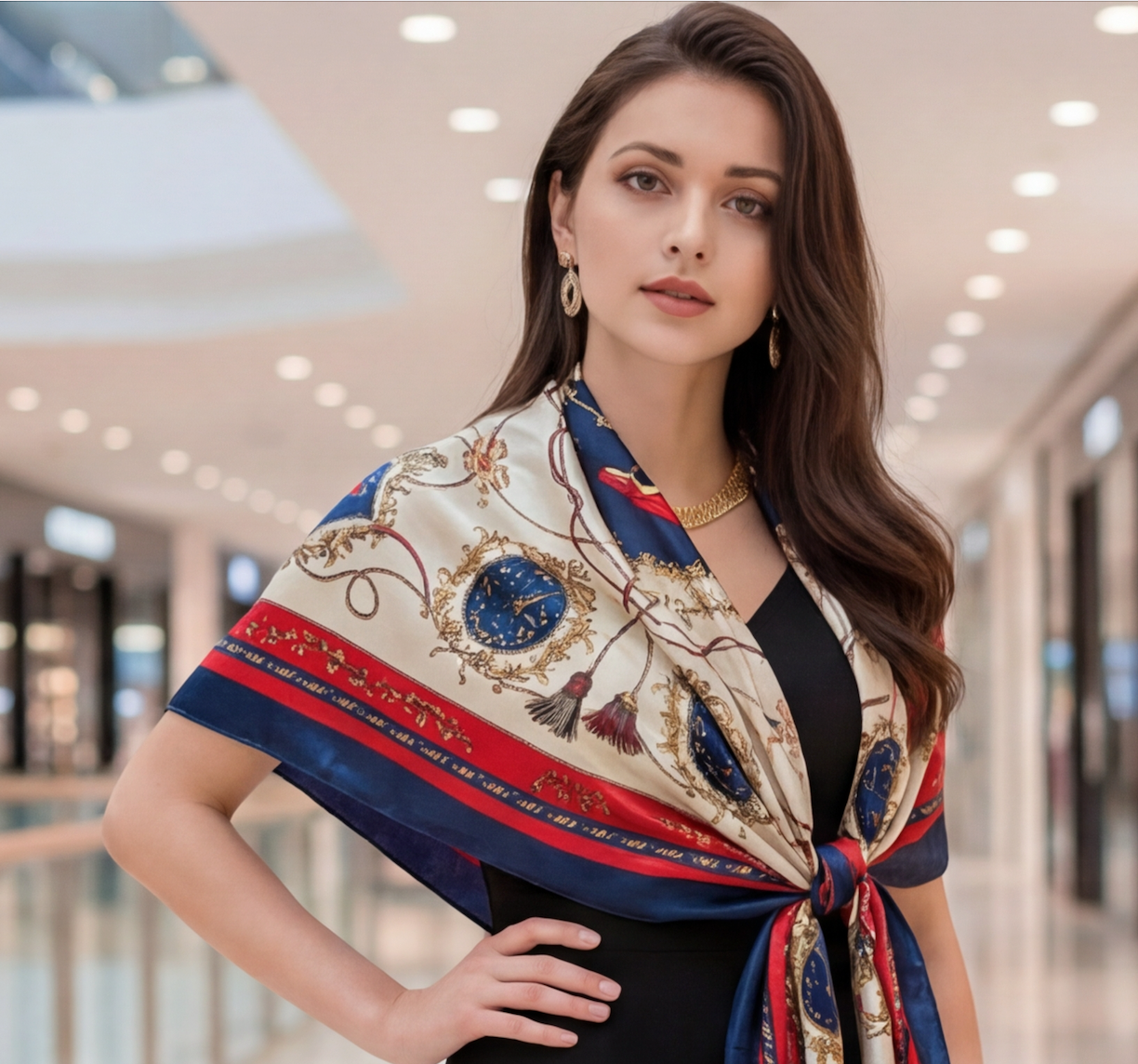 Ob als edles Accessoire für den Alltag, als eleganter Begleiter am Abend oder als feiner Schutz an kühlen Tagen – dieses Seidentuch unterstreicht Ihre Persönlichkeit mit klassischem Stil und moderner Leichtigkeit.