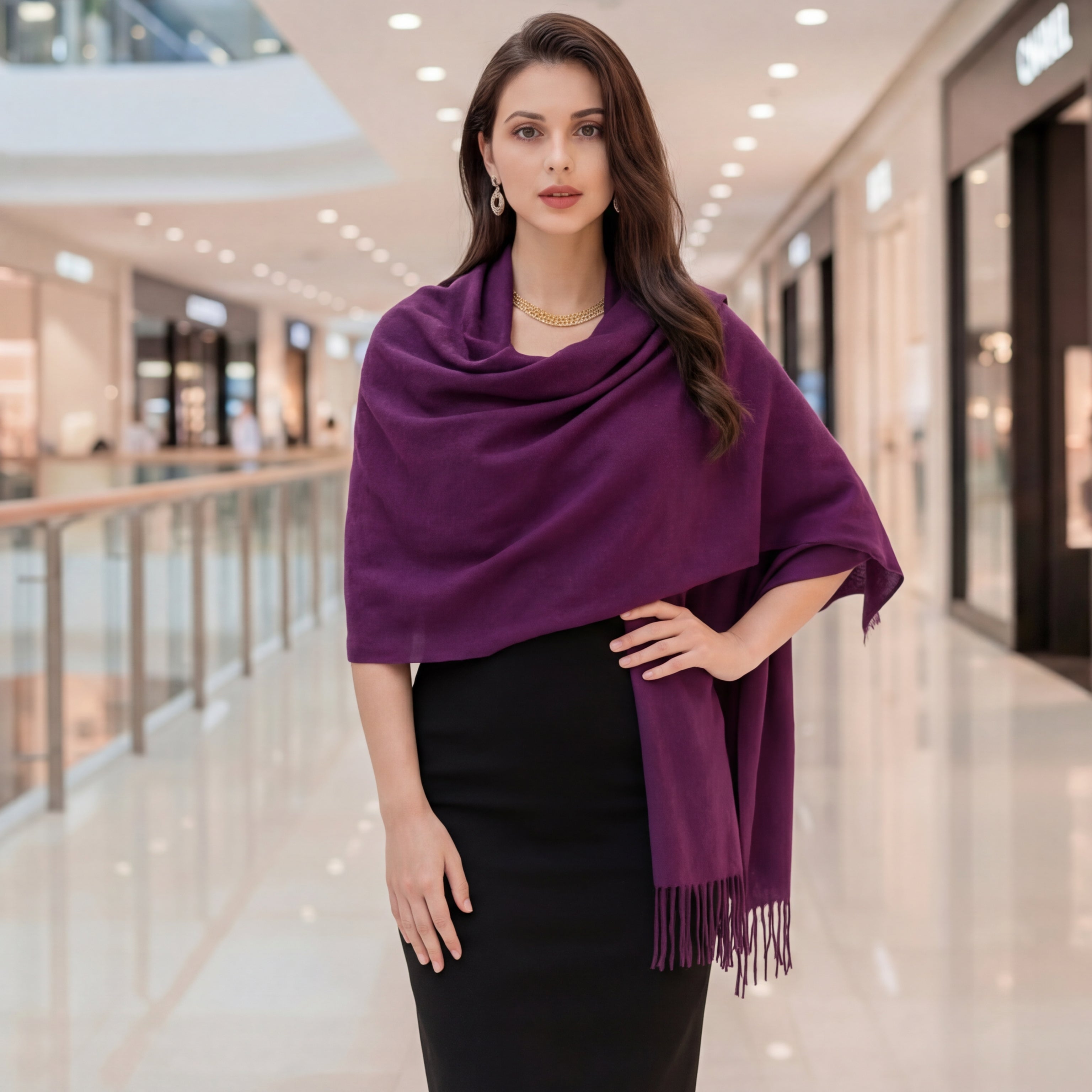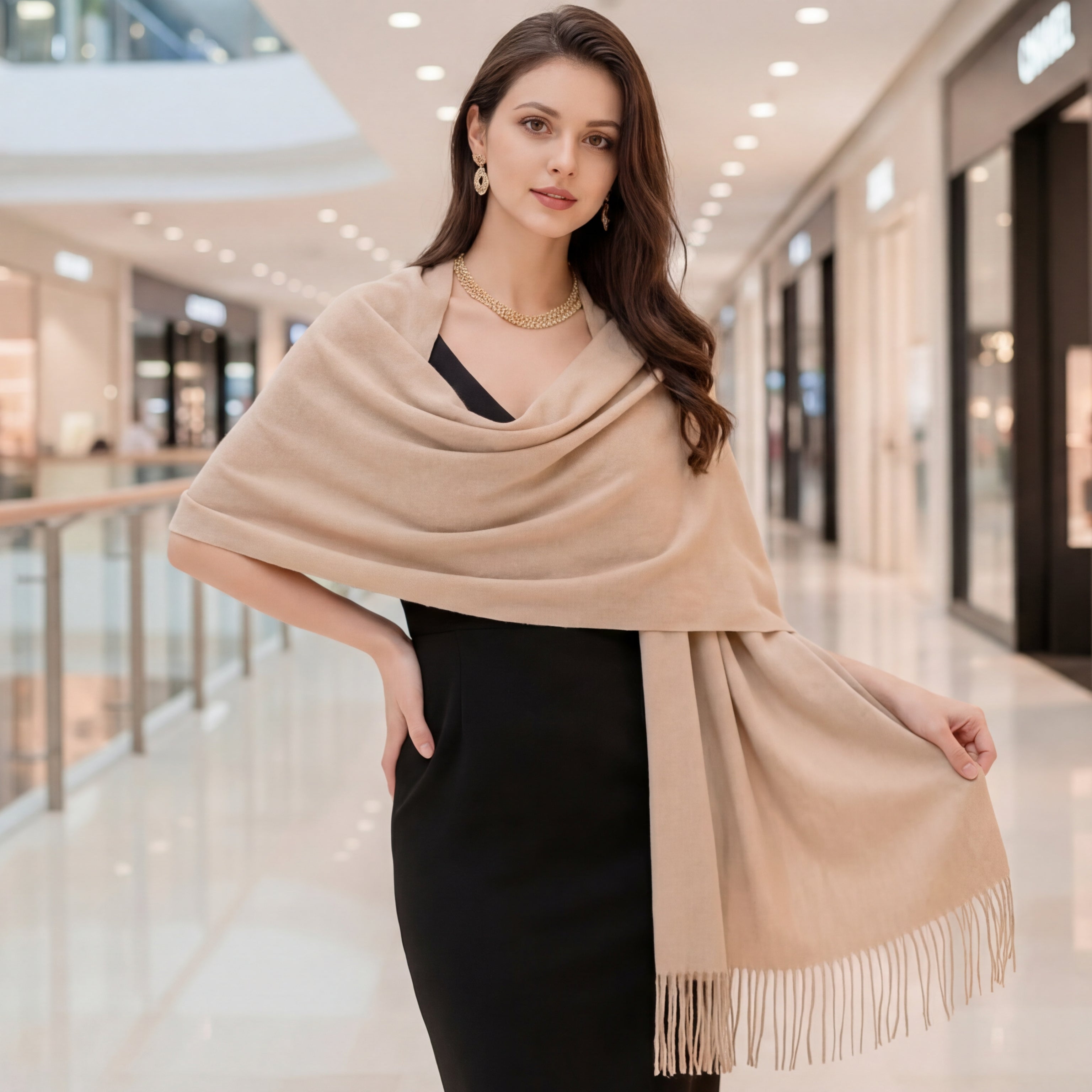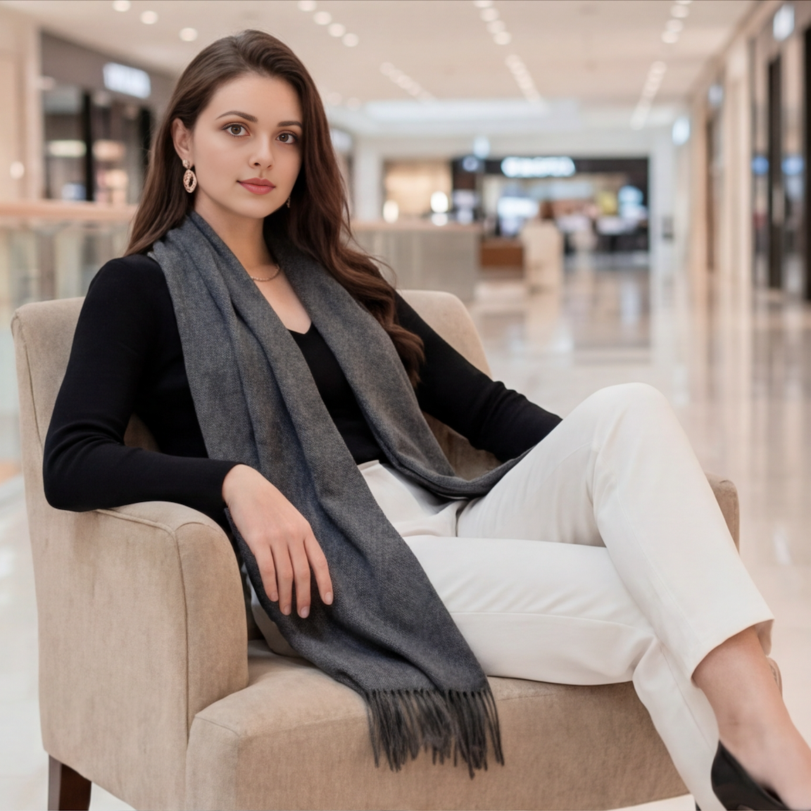 Dieser Schal umhüllt Sie mit edler Wärme und verleiht jedem Outfit eine zeitlose Eleganz, ob im Alltag, im Büro oder bei besonderen Anlässen. Dank seiner dünnen, luxuriösen Struktur ist er ideal für jede Jahreszeit und lässt sich mühelos kombinieren – von klassisch bis modern.