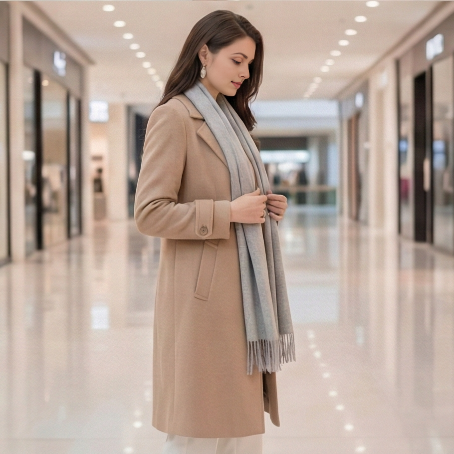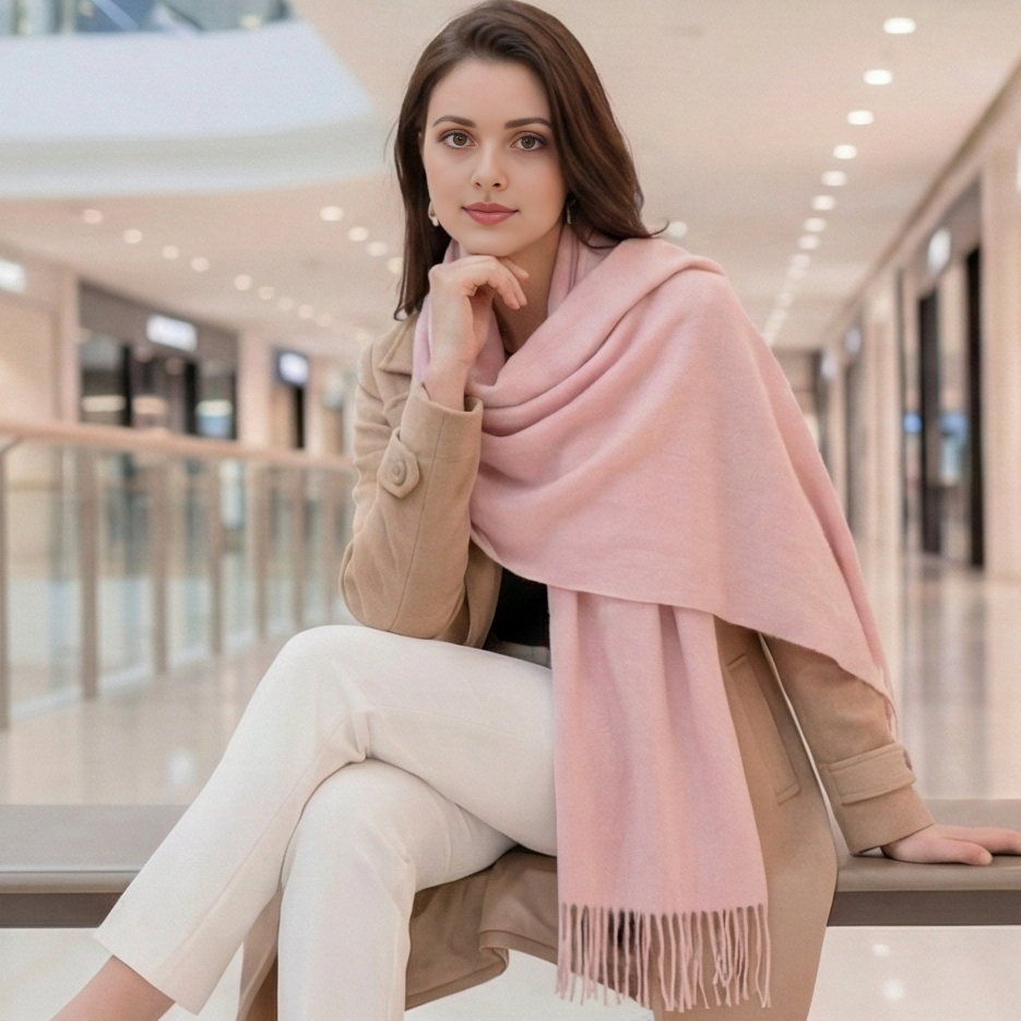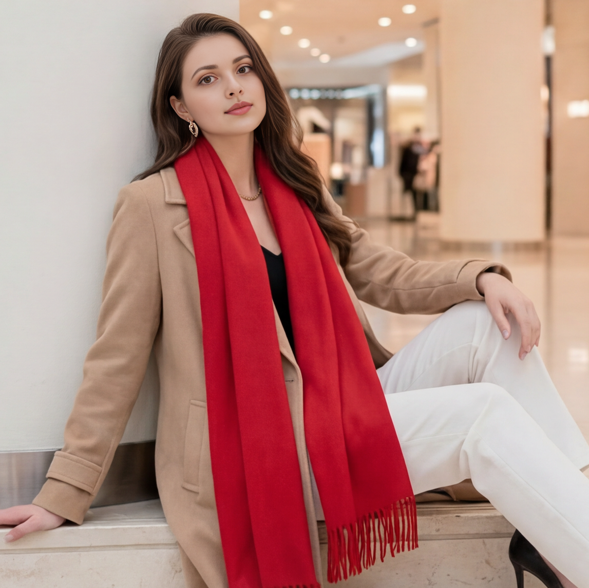 Dieser Schal umhüllt Sie mit edler Wärme und verleiht jedem Outfit eine zeitlose Eleganz, ob im Alltag, im Büro oder bei besonderen Anlässen. Dank seiner dünnen, luxuriösen Struktur ist er ideal für jede Jahreszeit und lässt sich mühelos kombinieren – von klassisch bis modern.