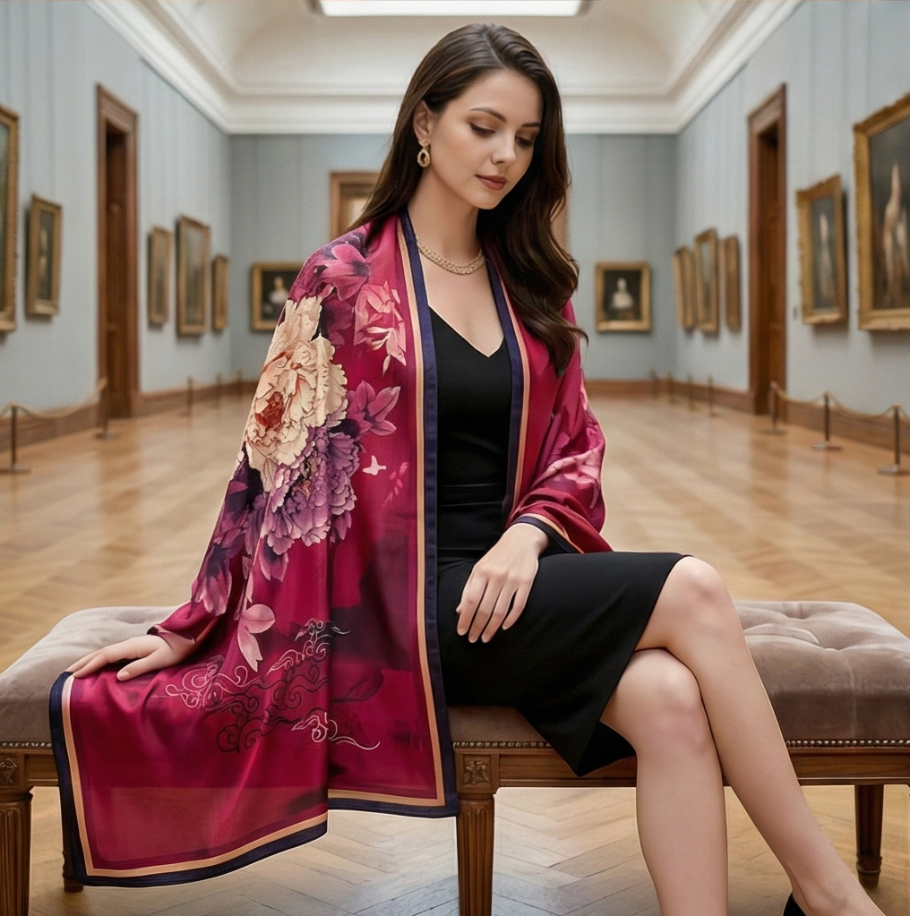 'I had never purchased a silk scarf online before, but this shop has set the bar incredibly high. The website was easy to navigate, and the detailed product descriptions made it simple to choose the perfect scarf. When my order arrived, I was over the moon! The quality of the silk is amazing, and it drapes beautifully. I can't resist giving it five stars – this shop deserves it!'