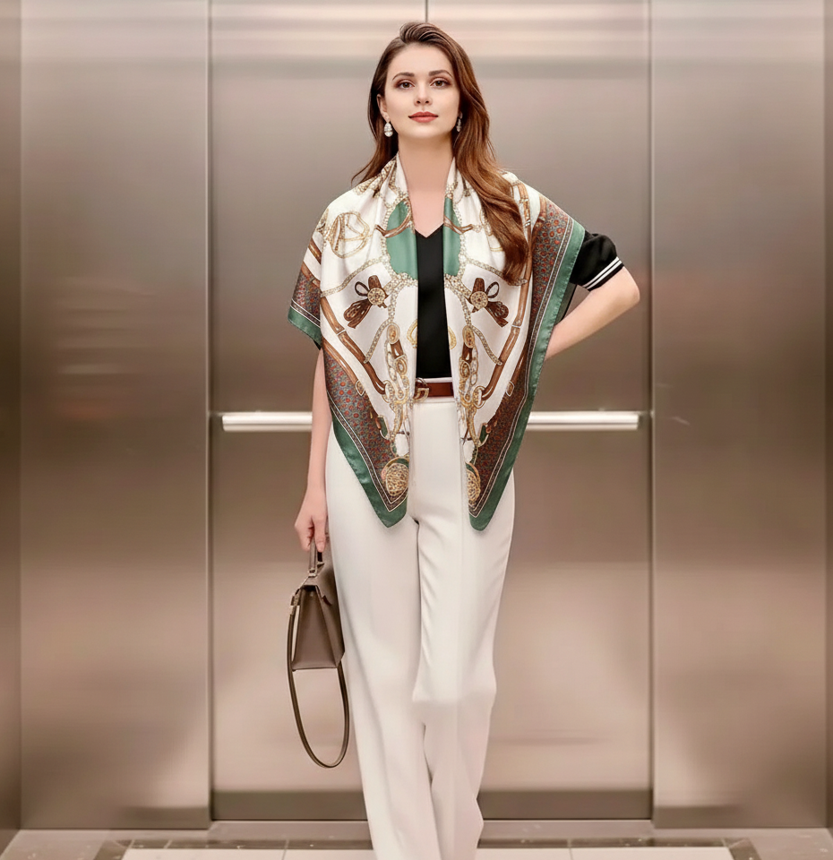 Ob als edles Accessoire für den Alltag, als eleganter Begleiter am Abend oder als feiner Schutz an kühlen Tagen – dieses Seidentuch unterstreicht Ihre Persönlichkeit mit klassischem Stil und moderner Leichtigkeit.