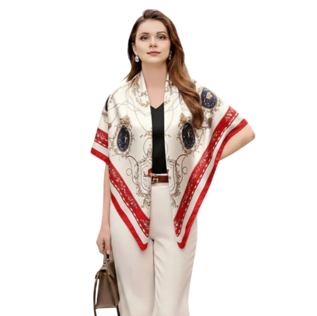 Ob als edles Accessoire für den Alltag, als eleganter Begleiter am Abend oder als feiner Schutz an kühlen Tagen – dieses Seidentuch unterstreicht Ihre Persönlichkeit mit klassischem Stil und moderner Leichtigkeit.