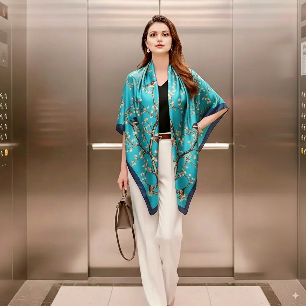 Ob lässig oder luxuriös – unser 100% Seidenschal verleiht jedem Outfit den perfekten Hauch von Stil.
