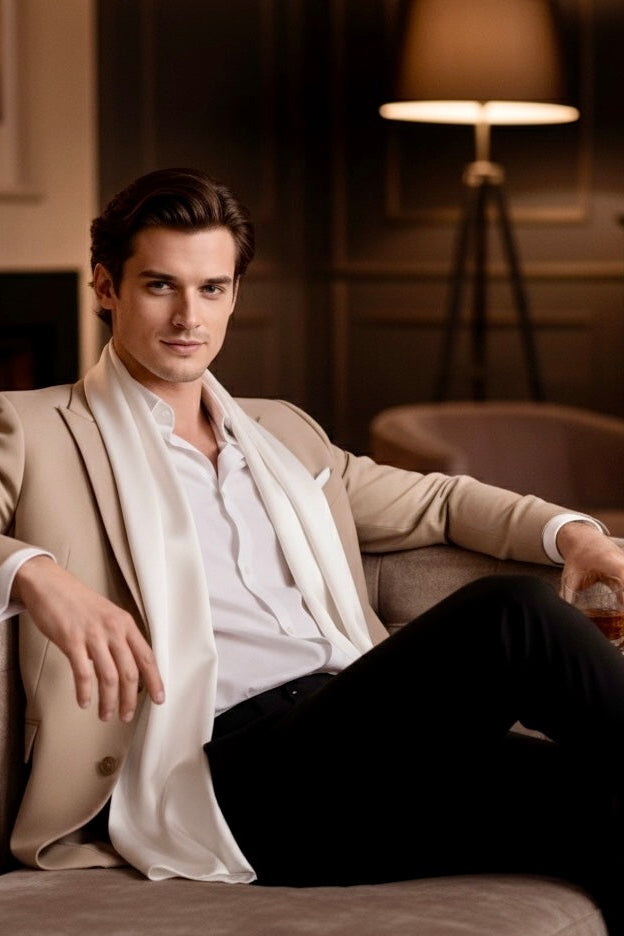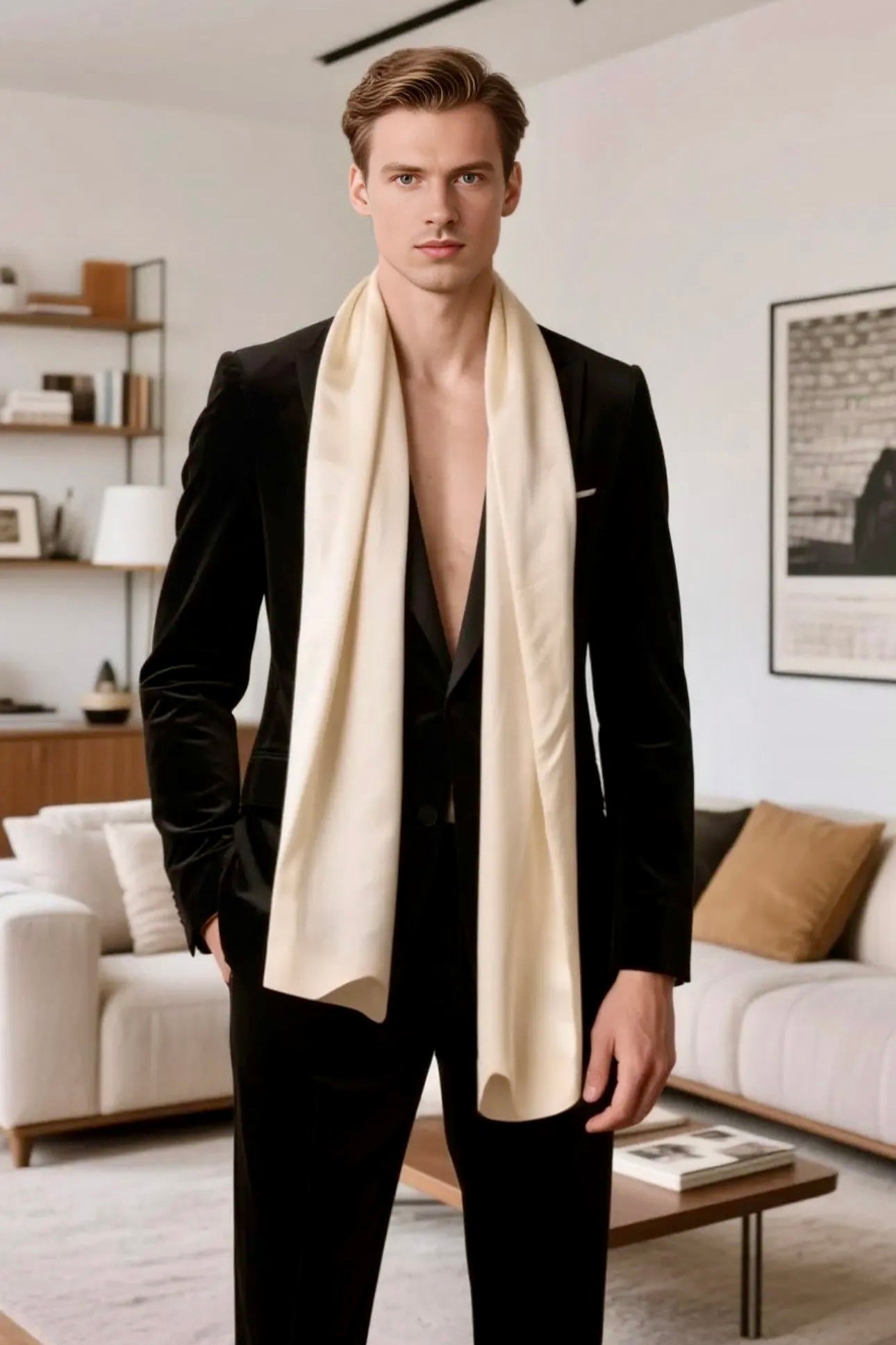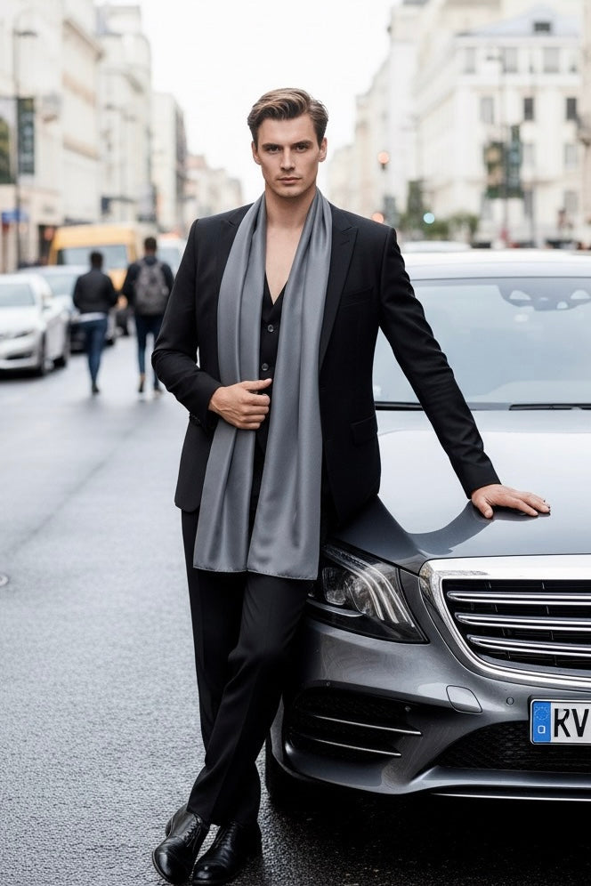 Eleganz beginnt im Detail. Unser edler Seidenschal ist die perfekte Ergänzung für deinen Anzug – ob im Business, auf Empfängen oder bei besonderen Momenten, die Stil verlangen.