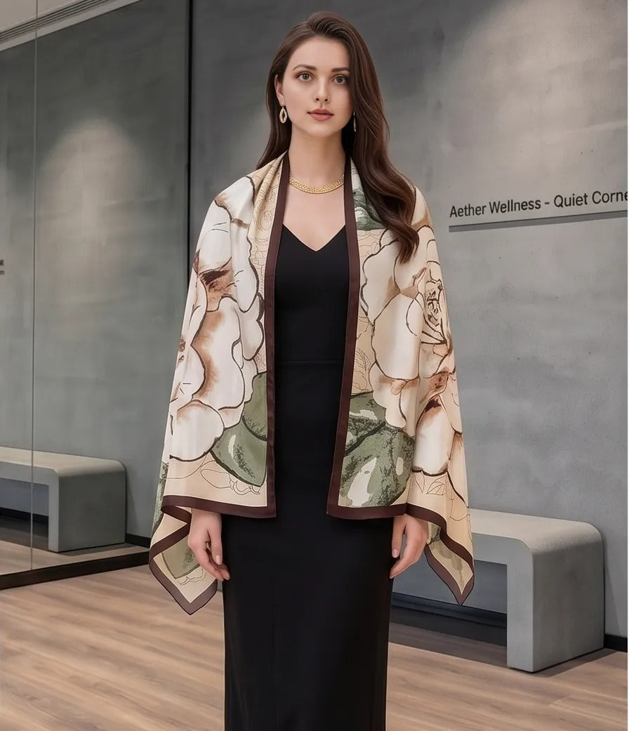 🌸 Eleganter Damen Seidenschal 180x90 cm – Klassischer Stil mit luxuriöser Seiden-Veredelung 🌸