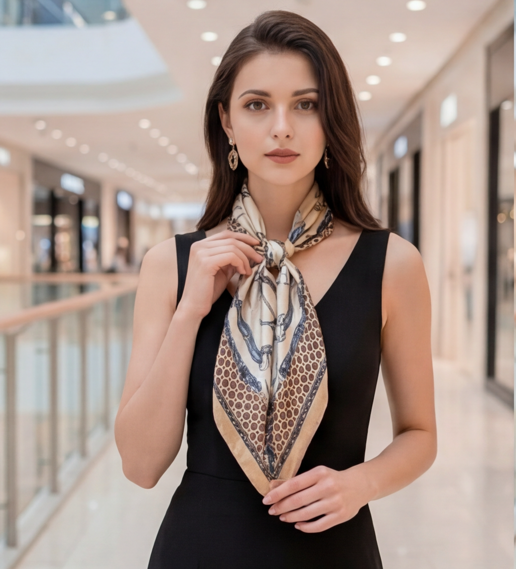 Beschreibung: Setzen Sie ein modisches Statement mit zeitloser Klasse – dieses exklusive Damen-Seidentuch im klassischen 90x90 cm Carré-Format ist die perfekte Ergänzung für jede Garderobe. Gefertigt aus hochwertigem Premium-Polyester mit edlem Seiden-Finish, vereint es den luxuriösen Glanz und den geschmeidigen Griff echter Seide mit der Langlebigkeit moderner Materialien.